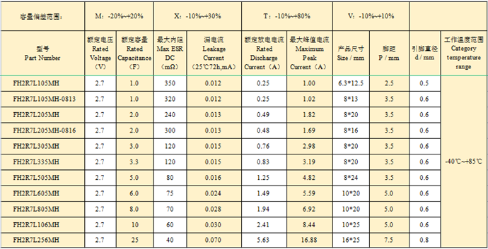 風(fēng)華超級(jí)電容FH2R7L605MH 產(chǎn)品型號(hào):FH2R7L605MH-2.7V 6.0F
