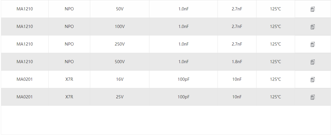 信維車用電容 產品型號:0201 0402 0603 0805 1206 1210